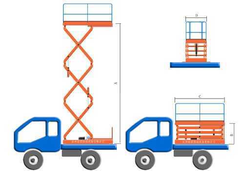 車載式升降機產品規格:本類產品根據升降高度可分為4、6、8、10米升降平臺,設備載重300公斤至500公斤,客戶可根據需求選用解放、東風、輕騎、福田、電瓶車等任何車型,設備直接采用汽車或電瓶的直接動力升降。